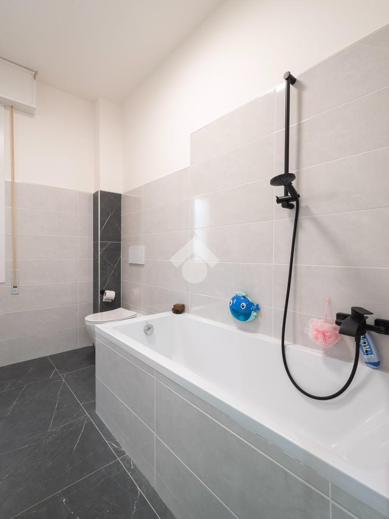 Completamente ristrutturato nel 2023, l'immobile offre finiture moderne e ampi spazi, ideali per chi cerca comfort e funzionalità. La disposizione interna comprende un ingresso, ampio soggiorno, cucina abitabile separata, entrando nella zona notte troviamo i due bagni funzionali e due camere da letto matrimoniali. I due balconi offrono spazi esterni privati, mentre l'aria condizionata garantisce un ambiente confortevole tutto l'anno.