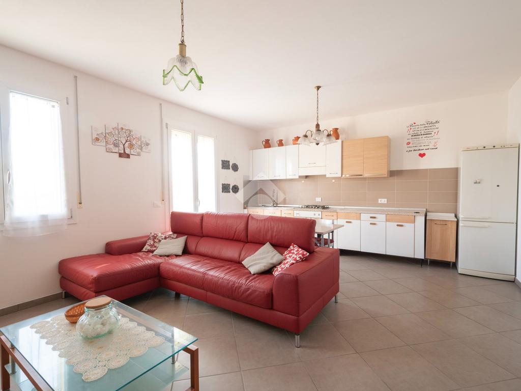 L'appartamento è composto da tre locali: abbiamo ingresso con un comodo ripostiglio, la zona giorno con angolo cottura si apre su un balcone che offre una vista rilassante sulla campagna circostante, assicurando luminosità e tranquillità. Nel reparto notte troviamo le due camere matrimoniali e un bagno spazioso.