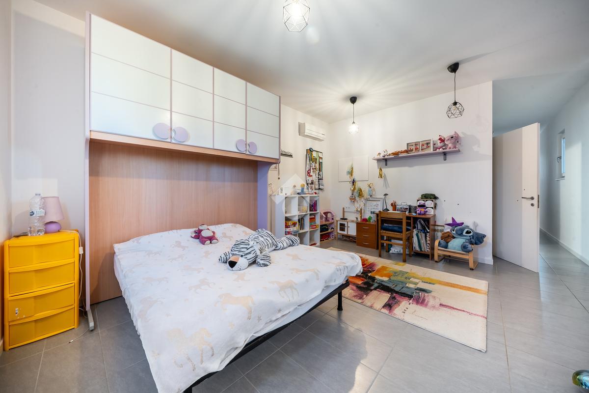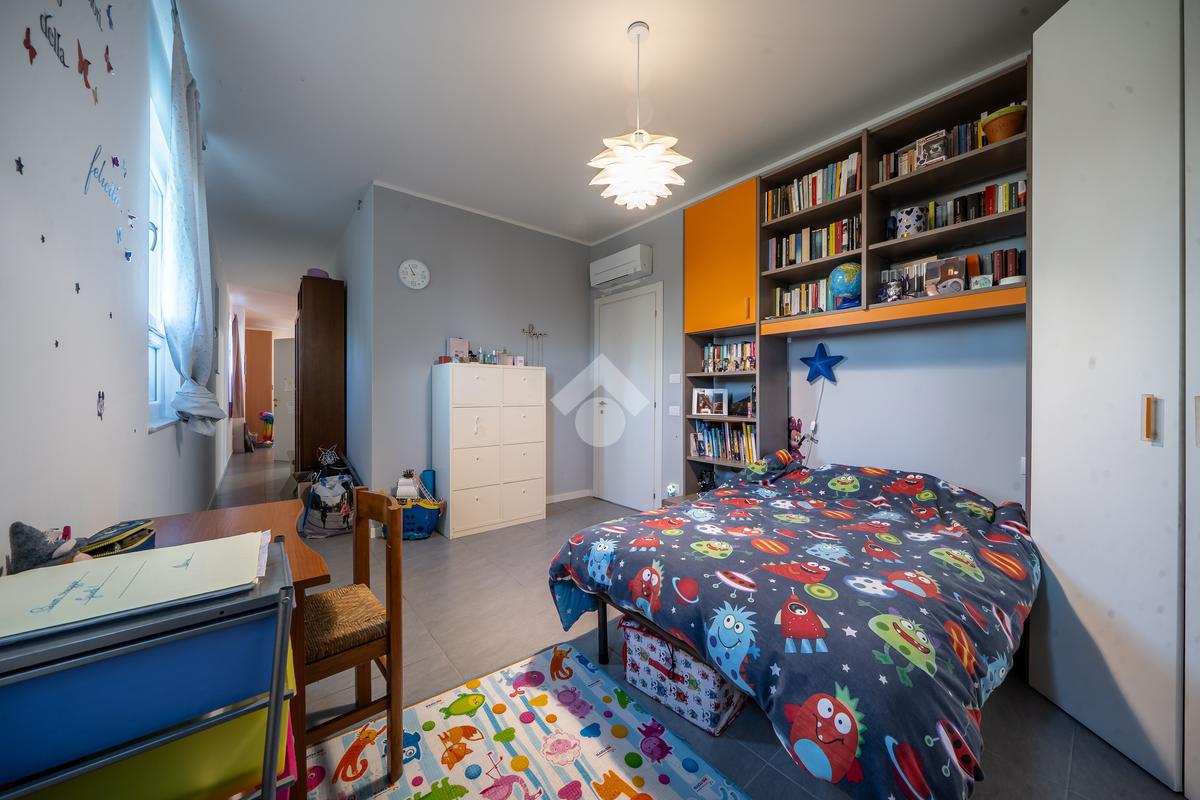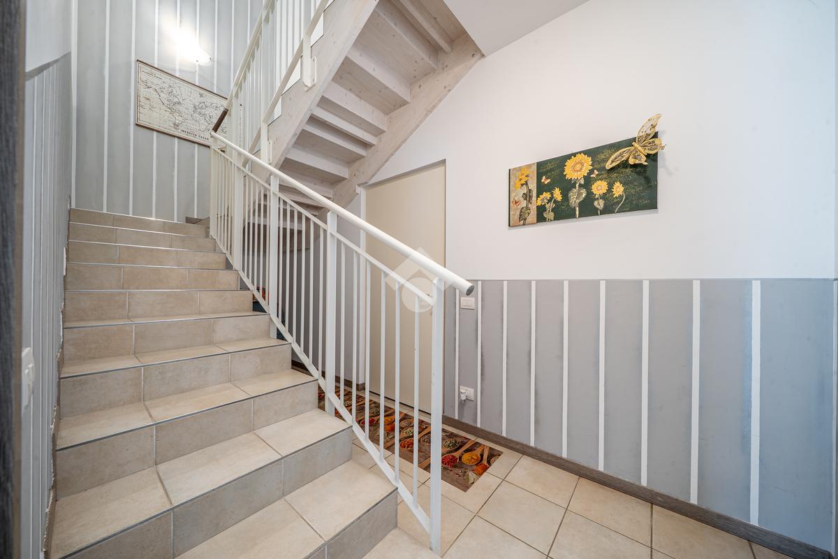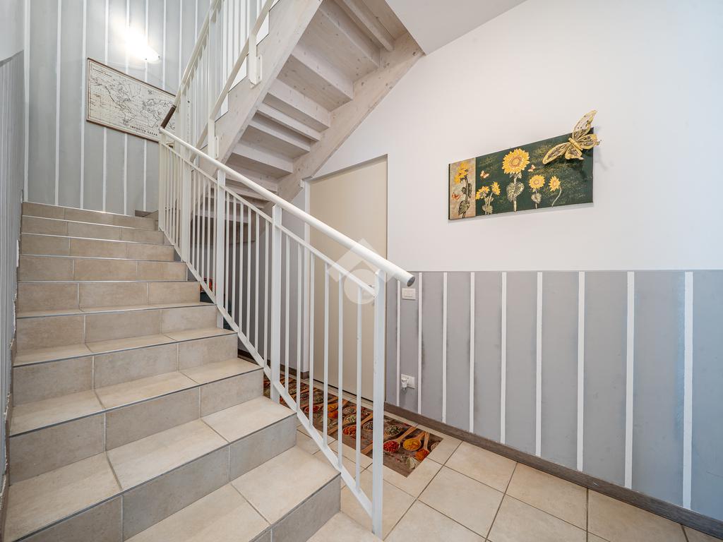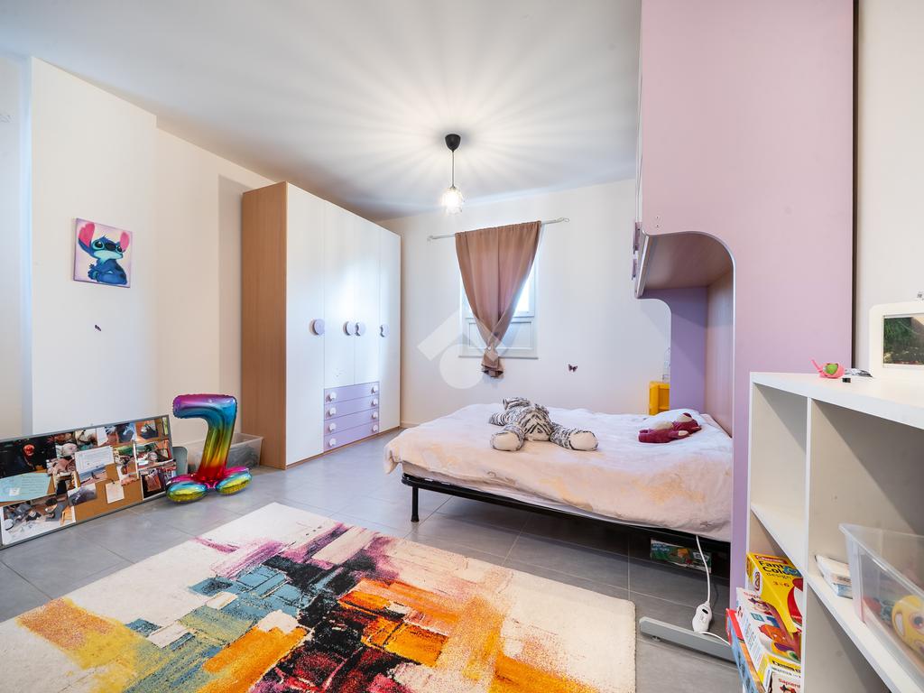 Al piano terra, troviamo un'ampia zona giorno, composta da un luminoso soggiorno, una cucina abitabile, una camera da letto, un bagno finestrato e una spaziosa lavanderia. Salendo al primo piano, l'area notte si compone di un vasto disimpegno che porta alle quattro camere da letto e a un secondo bagno finestrato.